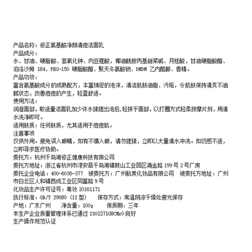 修正氨 深层清洁补祛痘洁面乳