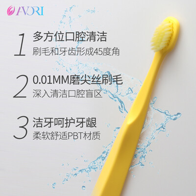 进口软刷毛,采用了磨尖处理,直径仅有0.01毫米,可深入齿缝清洁。牙刷柄拥有舒适细腻的磨砂质感,增加手部摩擦力不易掉落。