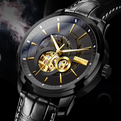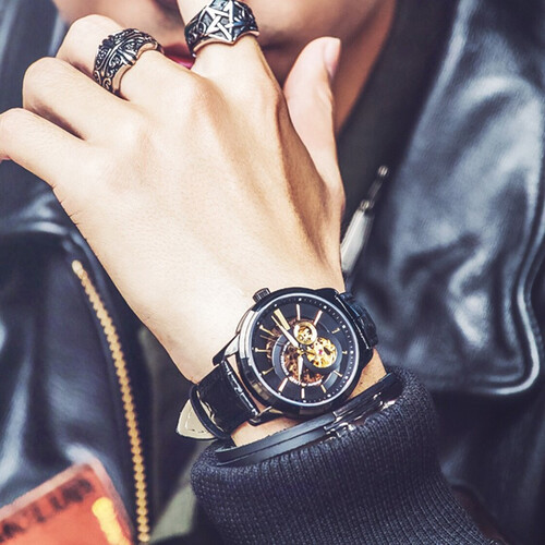 采用进口楼空机芯设计,看的范围更广,将机械表的动态美尽收眼底。搭配全黑壳身设计,优雅大方,带来时尚深邃的风度。