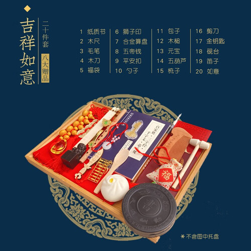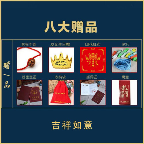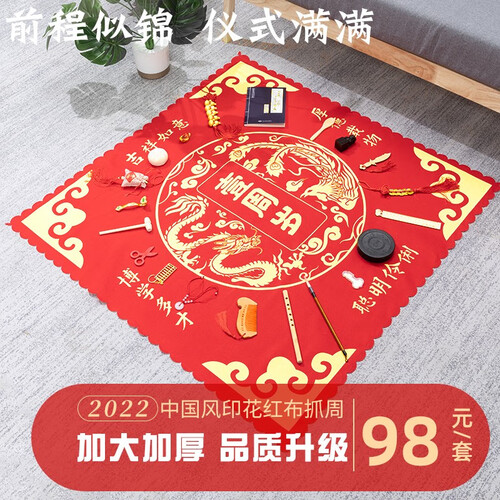 特殊的抓周套装,红色垫子,经过精美设计,表达美好寓意,各种丰富的物品,让孩子找到真正感兴趣的玩具。