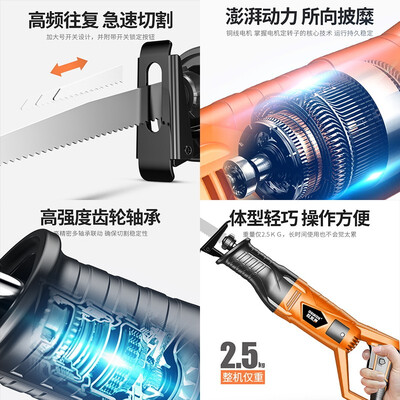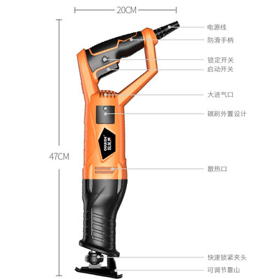 配有优质铜线电机,动力持久,性能很稳定。锯条为高强度合金材质,非常锋利,大大提高了切割木材的效率。