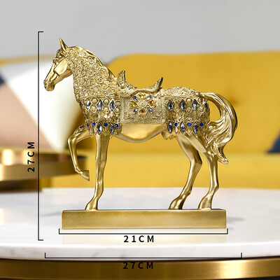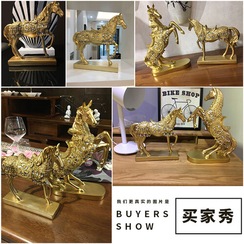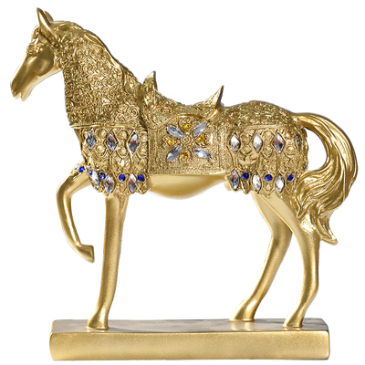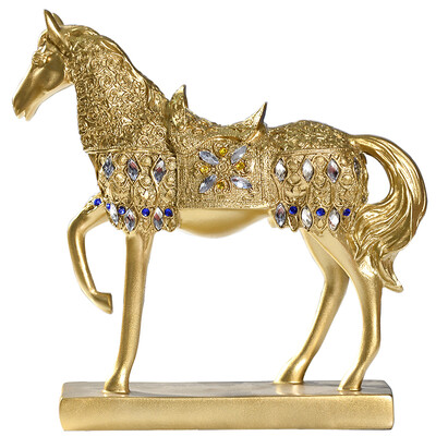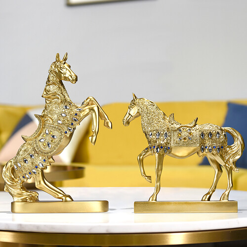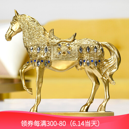 采用优品质树脂材料制作,表面散发细腻光泽,凸显质感;马的造型栩栩如生,金色更显典雅大气,配以手工贴珠工艺,细节更到位。