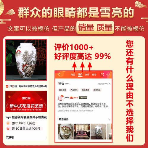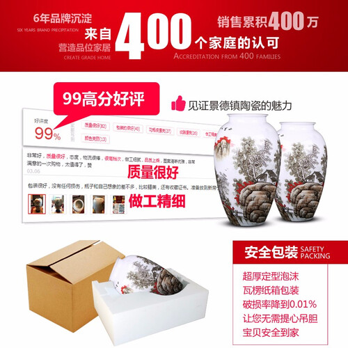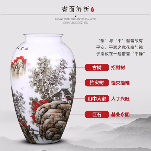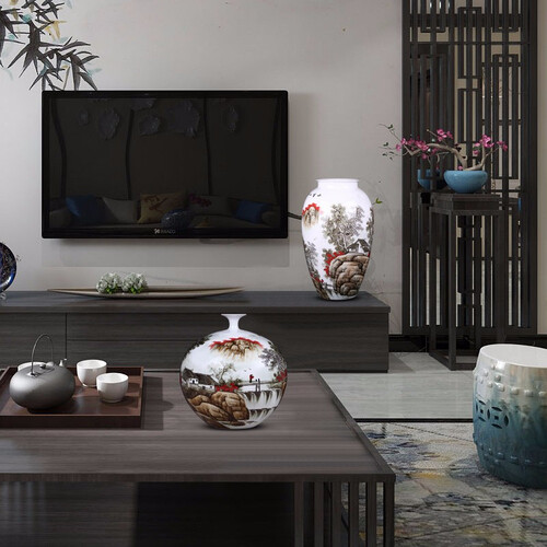将景德镇瓷土经过烧造工艺制作,令花瓶瓶体圆润,瓶口工整。配以精湛娴熟的画工,整体清新淡雅,彰显艺术气息。