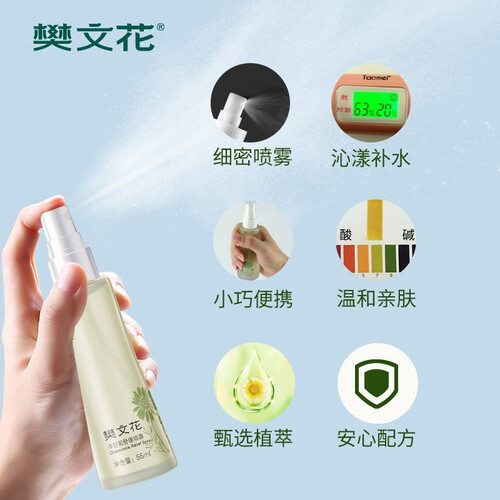 富含母菊蓝烯与合欢烯等舒缓物质,舒缓肌肤,使肌肤屏障恢复健康。按压式瓶口设计,细密的喷雾,利于肌肤吸收。