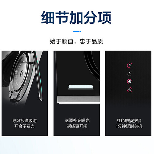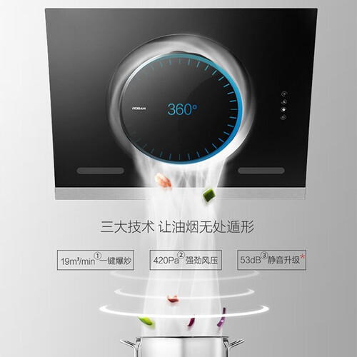 时尚美观纤薄机身,更好与厨房很好融为一体。纤薄机身设计,更好与橱柜融为一体。360°暴风拢烟,多方位瞬吸强排油烟。