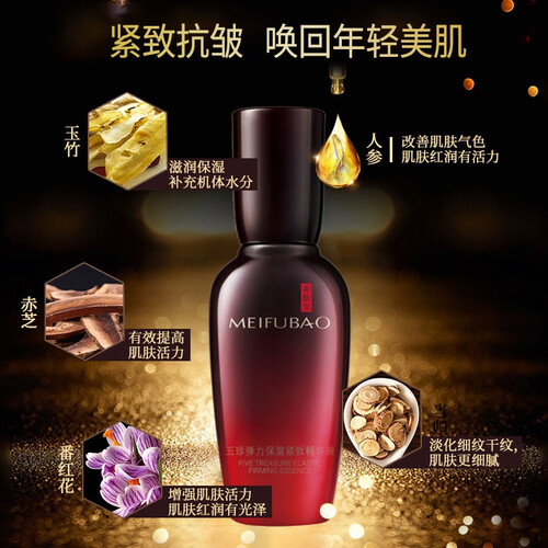 精华液中萃取五种珍草精华,给肌肤提供深度养护,帮你打造弹润肤质。清爽无油的配方,用后不油腻,维持肤感清爽。
