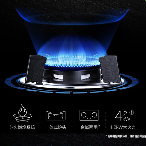 采用猛火匀喷燃烧系统,大火力集中聚焦热能,燃烧更充分。采用黑晶玻璃面板,表面平滑不黏油,一抹即净,易于日常清洁。