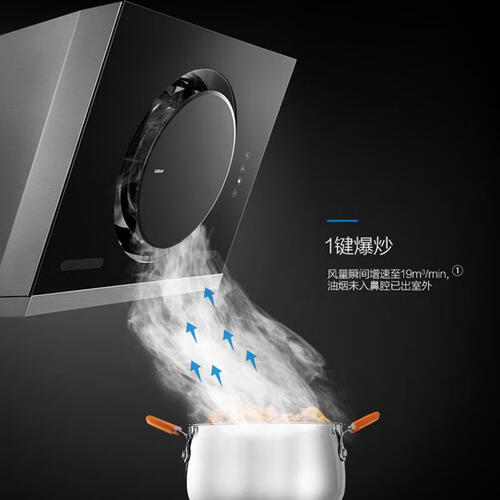 人性化工程学设计,侧吸30°倾角,避免磕碰,炒菜随心所欲,配备LED冷光灯,内斜照射,看清菜肴不费劲。