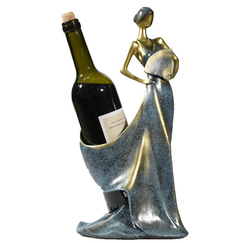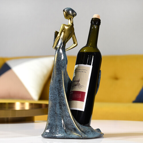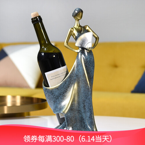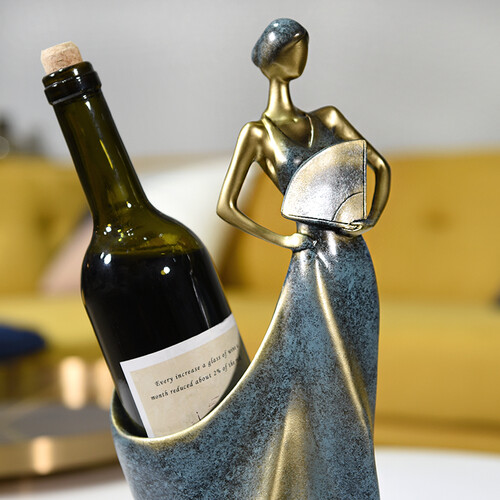 手拿扇子的美女造型,搭配低调深邃的古蓝色,彰显雅致奢华的欧式格调。不止是居家摆件,还是红酒收纳架,美女与酒可兼得。