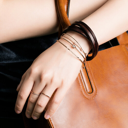 链身采用双层叠戴设计,搭配追梦星星,灵动时尚。手镯内为空心设计,灵动轻盈,搭配定制礼盒,实为送礼佳品。