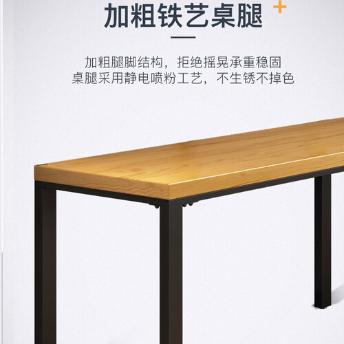 全实木桌面设计,拥有自然色泽,纹理清晰,美观实用。加粗铁艺桌腿设计,坚固可靠,防止生锈。