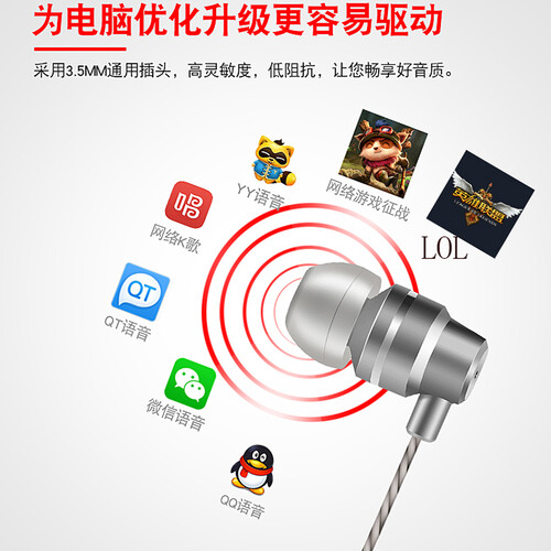 专为游戏而生电脑耳机,简单入耳款式设计,让你摆脱笨重感,感受轻便的游戏体验,2.5米加长线满足需求不受限。