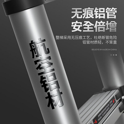 多功能家用梯子,无缝管加长铝管设计,让梯子承重力大,使用寿命长久。42mm大关节设计,让梯子稳固性高,使用安全。
