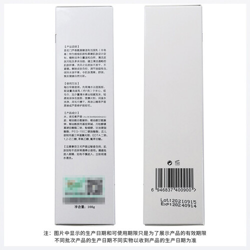 含精粹芦荟精华,补水保湿,维持肌肤水油平衡,改善敏感痘肌。含多种氨基酸成分,深层净化毛孔,有效去除螨虫。