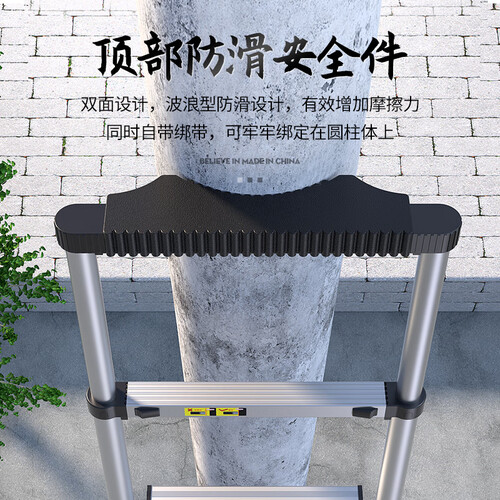 顶端设有防脱挂钩,挂钩加粗不易断裂,使用时可用钩子钩住物品,有效增加梯子的稳固性。
