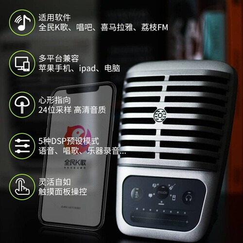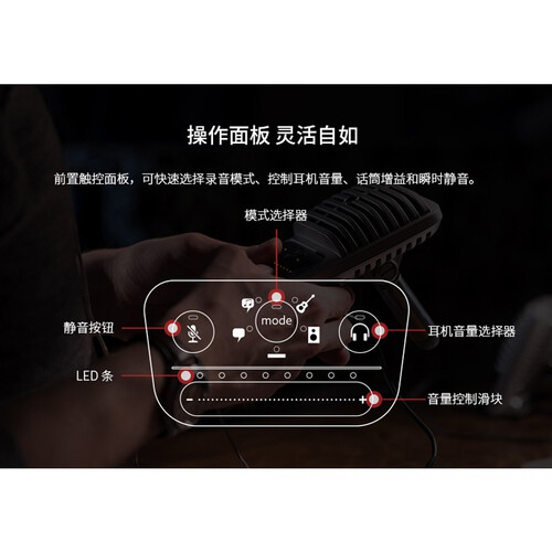 配备大振膜电容,提供强大音乐表现力,带来更好的享受。搭配五种可选择模式,优化均衡和压缩设置以符合您的录音需求。