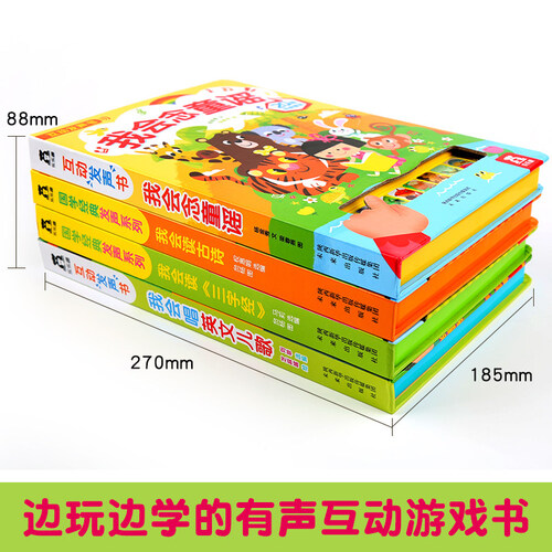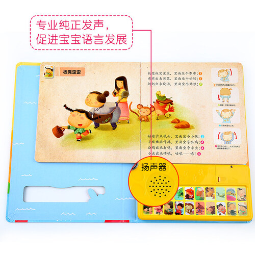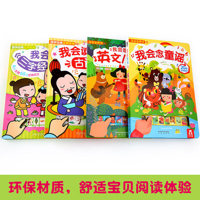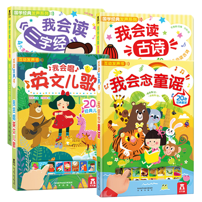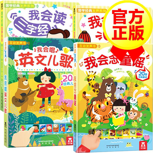 这套书搭配有创意发声设备,按一按就能听书中的内容。内容涉及童谣、古诗、英文儿歌和三字经,比较全面,适合启蒙使用。