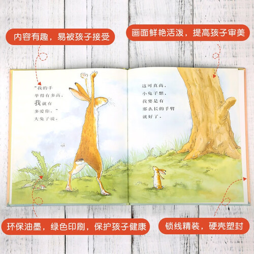 这本书通过两只兔子之口,把生命中那种原始的母子之情浓缩在短短的一段对话里,让孩子将心中的爱意表达出来,体会爱的温暖。