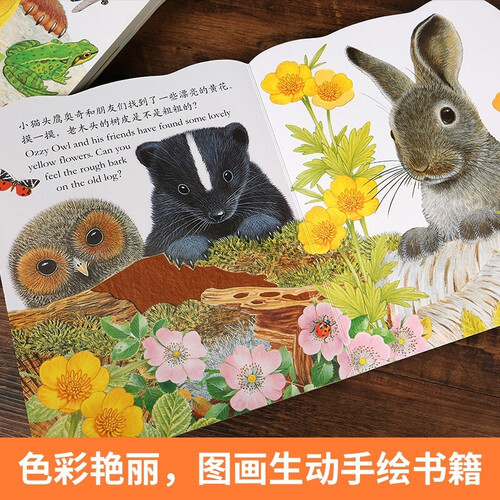 此书采用中英双语对照设计,通过小兔、小猫头、小熊等小动物形象,搭配精美的插图,让孩子走进了动物世界,获取认知知识。