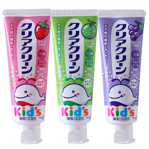 包括三支不同果味的牙膏组合,分别是深受儿童喜爱的草莓味、哈密瓜味和葡萄味。其原料天然健康,品质达到可吞咽级别。