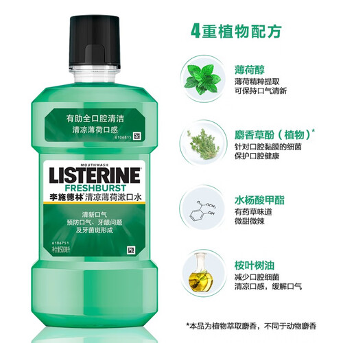 萃取加入薄荷成分,入口清凉带有浓郁薄荷香气,助你释放清新口气,采用健康配方,漱口后吐出即可,无需清水再漱口。