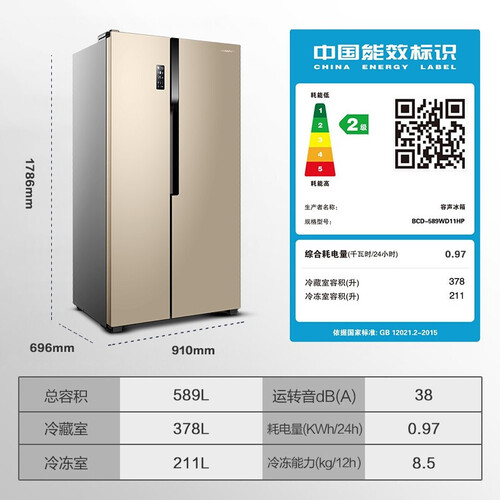 容声 离子净味对开冰箱