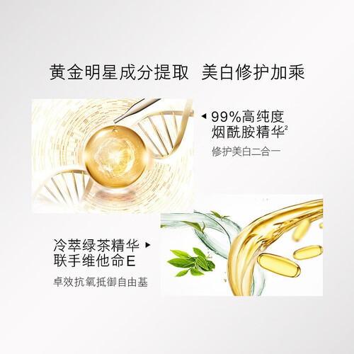 蕴含高纯度烟酰胺成分,带来更快的美白力。烟酰胺小分子深入肌底,抑制色素形成,告别熬夜黑、晒黑,带来透亮肌肤。