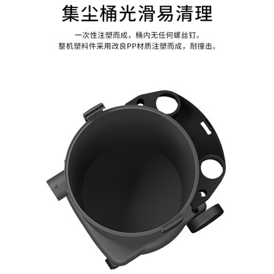 采用一次性注塑成的集尘桶,桶内无螺丝钉,耐撞击光滑易清洁。搭载手推式车架,搭载推力转向轮子,操作方便。