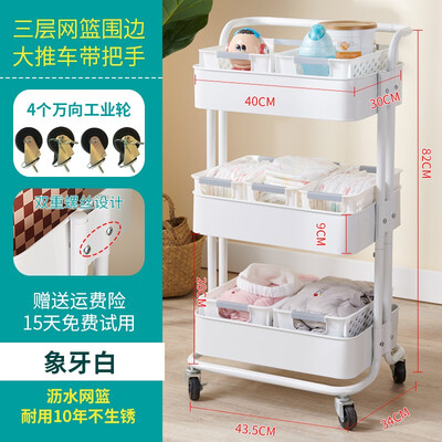 佳佰家用象牙白带轮置物架