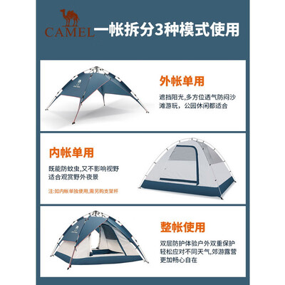使用压胶防水涂层,避免雨水渗入,保持帐内干爽。配备耐用包装袋,可提可挎,户外携带更自由。