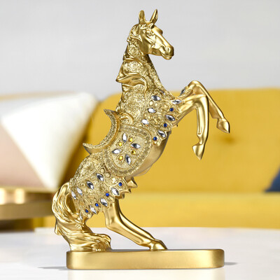 立马的造型有着刻字,具有美好的寓意,可摆放于家中和办公室场所。手工灌浆和贴珠的工艺,细节处值得考究。