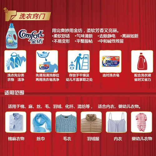 升级去污配方,深层祛除各种污渍,让衣物洁净如新。特别添加芦荟精华,温和洗涤不伤手,润顺成分亲和肌肤。