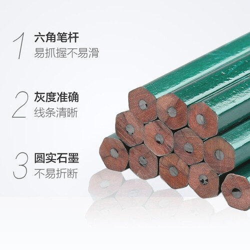 经典的绿色外观设计,精致典雅,美观大方。笔杆经过了软化处理,让你削笔时更加省力。