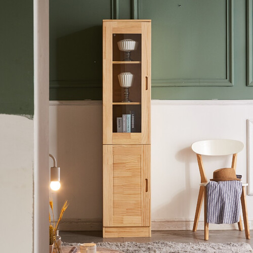 柜门采用钢化玻璃材质打造而成,具有优秀的防尘效果。选用松木材质制作,具有较强的承重能力,防止断裂。
