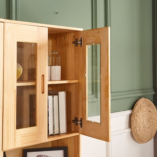 妃梦思 钢化玻璃实木书架