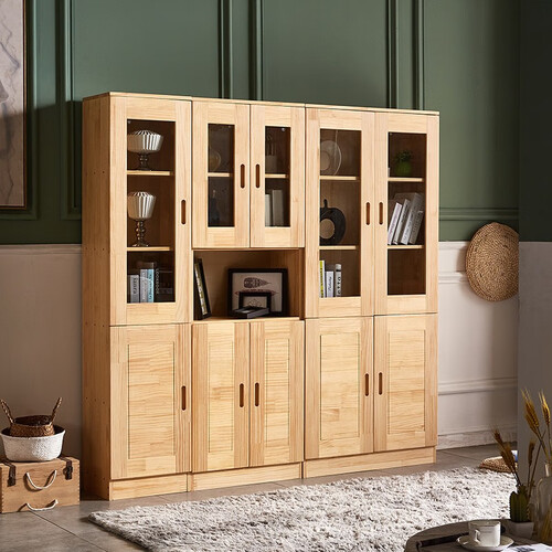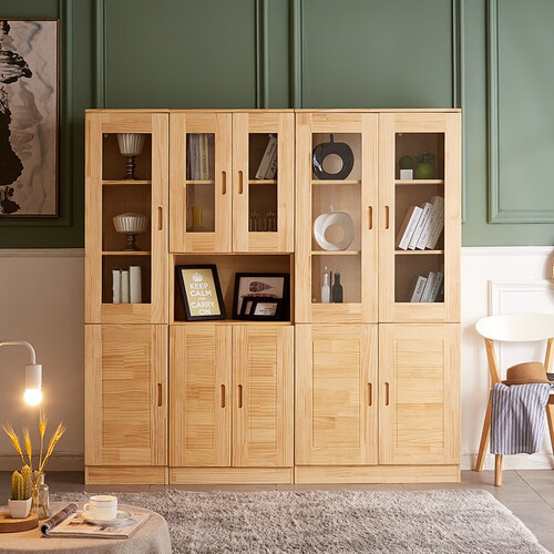 妃梦思 钢化玻璃实木书架