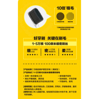 以人体工学为载体,贴合于手掌的刷柄,使用轻松又握感舒适。将刷毛以磨尖工艺进行处理,温和清洁更保护牙龈。
