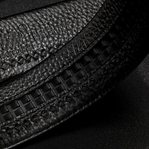 整张牛皮加入定型物缝合,带身挺括立体,保形持久。扣头宛如跑车形状,具有艺术美感,经电泳油封工艺处理,提升耐磨性。