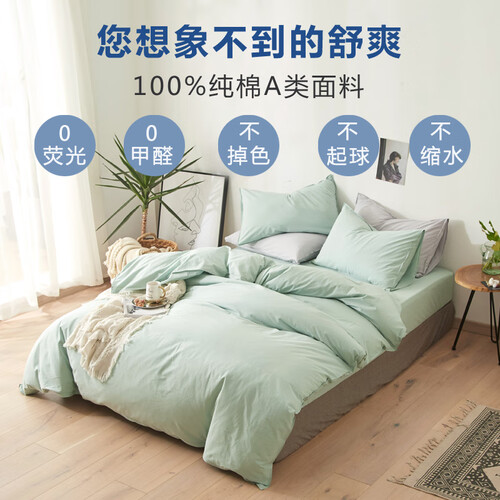 这是一款无荧光、无甲醛的被套,符合A类标准,母婴也可放心使用。采用双针锁边制作,牢固不脱线,结实又耐用。