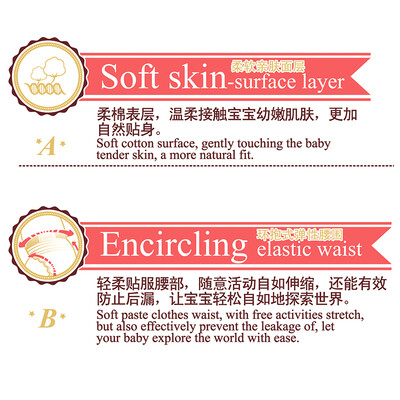 层层高科技吸水材料,有效果防止侧漏,轻柔包裹宝宝肌肤。