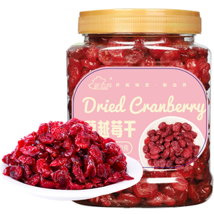 红宝石色泽的蔓越莓果干,软硬适中,酸甜可口。因其含有丰富的膳食纤维,还可促进肠胃消化,适合全家食用。