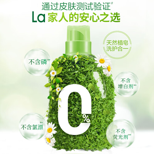 蕴含天然植物萃取成分,低泡清洁,易漂清,温和洗护,令衣物更柔顺。便捷提手设计,握持柔和舒适。