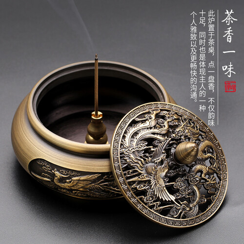 家用创意沉香,突显个性时尚品味。龙凤平底宣德炉外观精细典雅,即可当装饰品,也可以用来摆放沉香。镂空工艺体现锻造手法高。