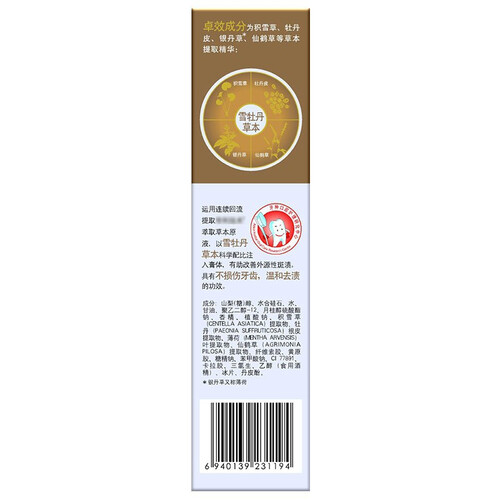 添加多种植物成分,补充牙龈营养健康牙周让你的牙齿健康亮丽。富含银丹草、牡丹皮成分,有助舒爽清新口气,同时清火固齿护牙。