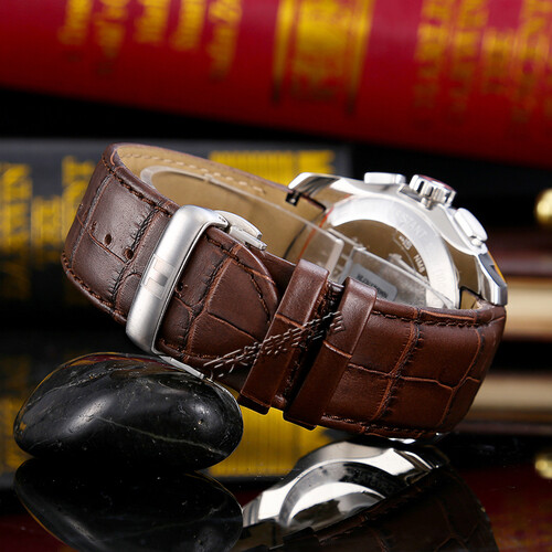 优选进口的石英机芯表盘,内置多个小表盘设计,数字更加的精准。纹理清晰又细腻的皮质表带,质感细腻舒适,夏季佩戴不会闷热。