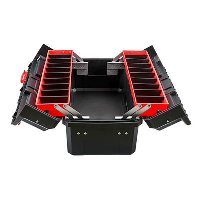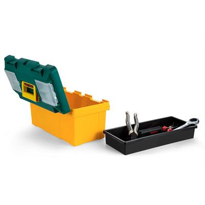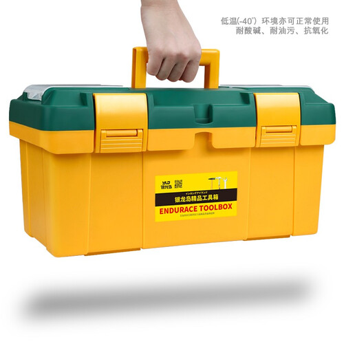 这是一款加强版的工具箱,卡扣采用ABS材质打造,闭合牢固,而且不易变形,比较耐用,箱顶还设有零件盒,方便分类存储。
