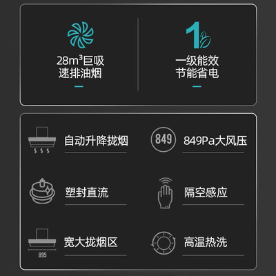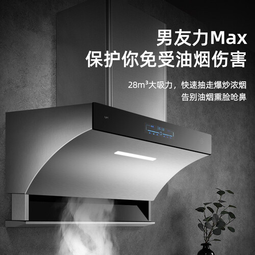 采用宽幅拢烟腔可加大对油烟的吸附,效果更好,不跑烟窜烟。强劲的直流变频电机提供强劲的动力,提高排烟能力。