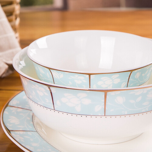 双层金边,提升整体的精致感,给你带来更美观的视觉效果,而且餐具套装还可以用微波炉加热,使用更省心。