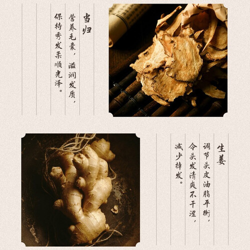 采用生姜提取成分,深入发根养护头发,天然护发更加放心。产品无色素等有害物质添加,健康安全有保障,孕妇儿童方可使用。