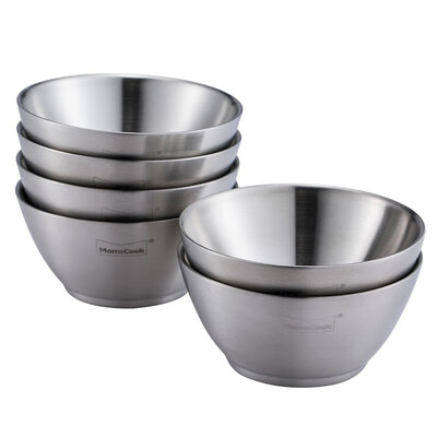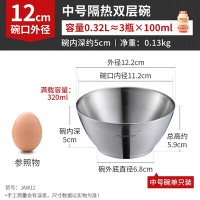 双层的304不锈钢材质,厚实紧致结构稳定,经久使用不生锈,健康环保对食物无害。加宽的碗口设计,食用更方便。